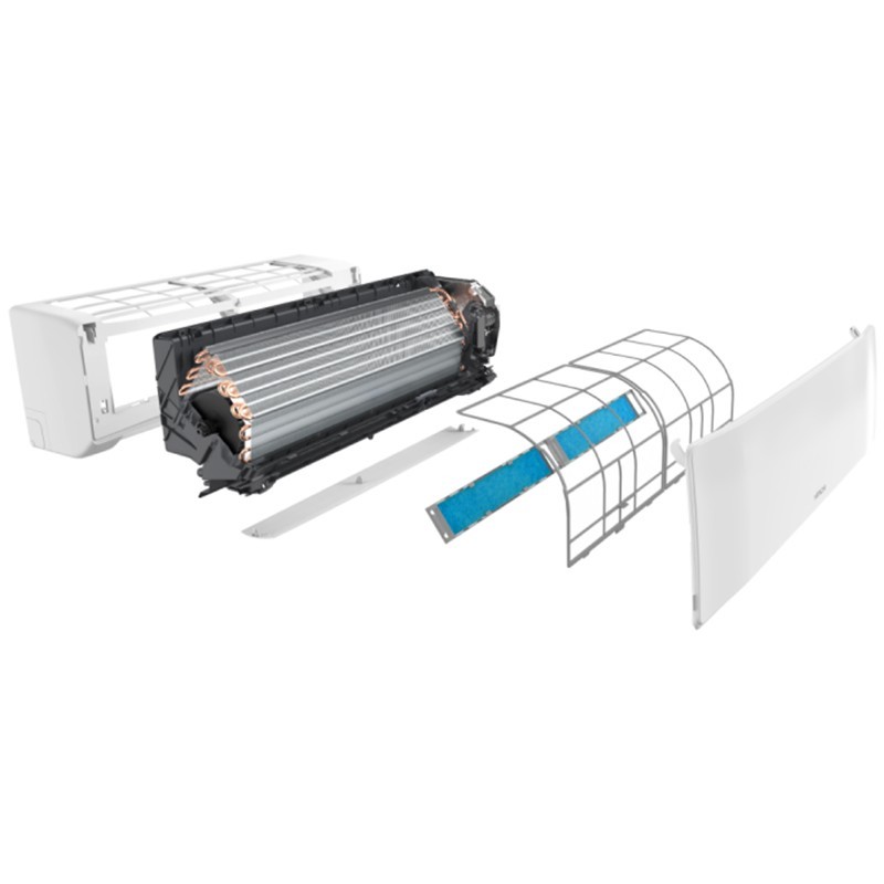 Tehnologia Hitachi FrostWash ajuta la mentinerea performantei AC pentru anii urmatori, inghetand praful si murdaria, topindu-l si spalandu-l.